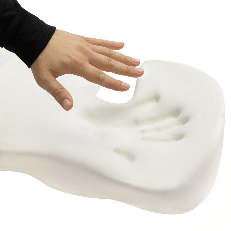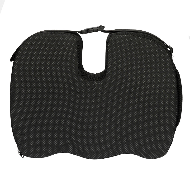 Специальный вырез в задней части подушки снижает нагрузку на копчик и облегчает течение деликатных заболеваний.